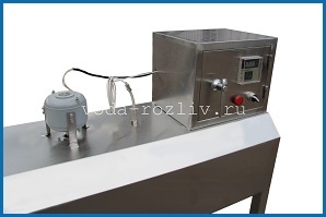 Предварительное надевание термоколпачка на горло бутылей производится вручную, после чего происходит усадка колпачков в термотоннеле за счет горячего воздуха создаваемого нагревателями.