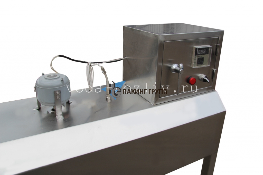 Термотоннель предназначен для усадки предварительно надетых на горлышко бутылок ТУ (термоусадочных) колпачков. Обеспечивает герметичное облегание горлышка бутыли с пробкой.