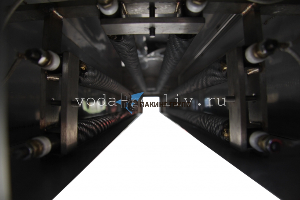 Термотоннель обычно входит в комплектацию автоматической линии розлива питьевой воды в бутылки 19 литров, но может работать и отдельно в комплексе с пластинчатым транспортером.