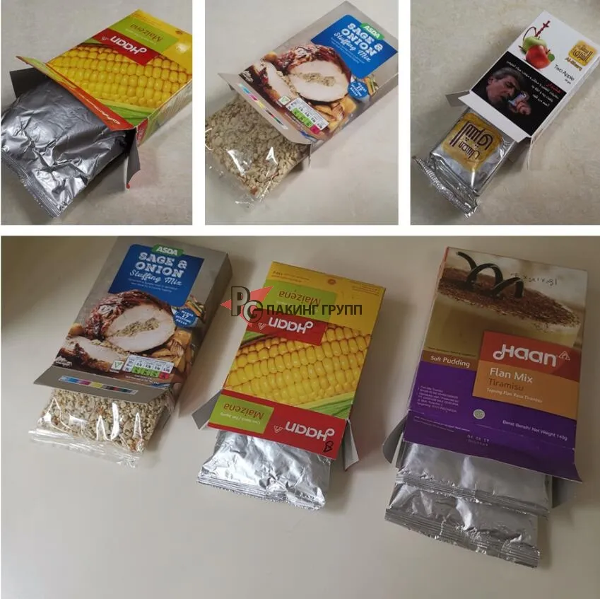 Картонажная машина может использоваться для упаковки любых продуктов требующих упаковки в картонные коробки. Ниже приводим некоторые из них: