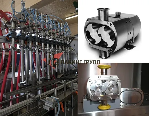 Принцип наполнения – лепестковые насосы с серводвигателями. Серводвигатели, управляемые с сенсорного экрана имеют возможность установки ускорения наполнения в начале розлива и замедления в конце розлива во время одного цикла наполнения.