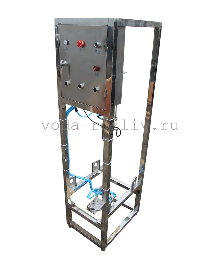 Готовая ПОЛУАВТОМАТИЧЕСКАЯ линия розлива воды в тару 19 л c производительностью 200 бутылок в час включает в себя следующие единицы оборудования: