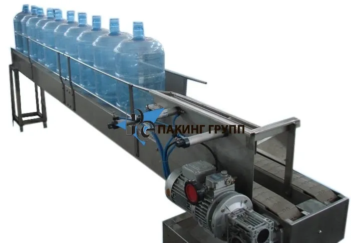 Предназначен для загрузки бутылей 19 литров в моноблоки розлива. Комплектуется конвейером с приводом 4-метра.