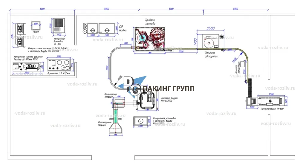 Розлив минеральной воды осуществляется на автоматическом или полуавтоматическом оборудовании розлива. Расположение оборудования должно обеспечивать очередность проведения технологических процессов, безопасность и удобство обслуживания и ремонта оборудования. В основу разработки архитектурно-эстетического оформления производственных помещений должно быть положено решение, обеспечивающее наилучшее управление технологическими процессами и повышение производительности труда рабочих. Линия розлива минеральной воды представляет собой комплекс оборудования для осуществления полного цикла розлива, в которой отдельные единицы связаны конвейером.
