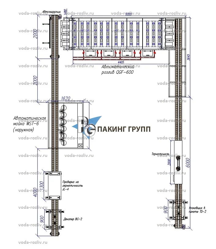 Данные схемы являются типовыми и приведены на нашем сайте для примера. Инженеры нашего Сервисного центра разработают проект размещения линии розлива воды и напитков на производственных площадях конкретно для Вашего предприятия с учетом производительности и с подводом коммуникаций.