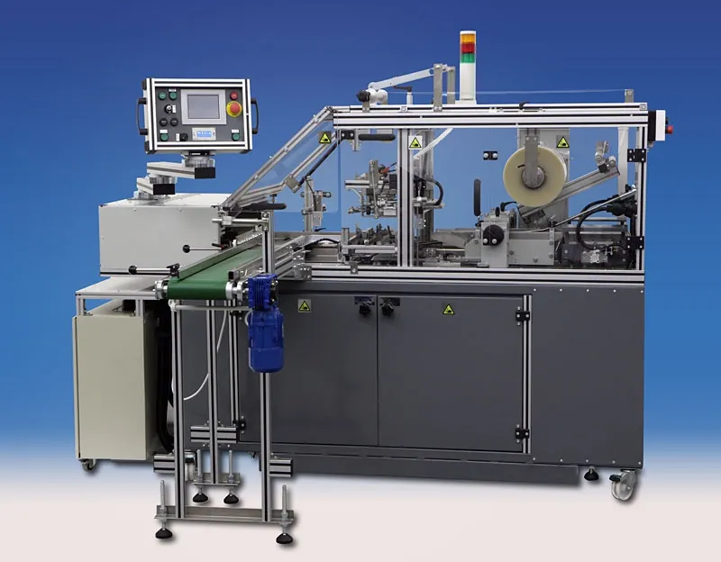 Полуавтоматическая машина для упаковки продуктов прямоугольной формы в полипропиленовую пленку WEGA FK 6 - последовательность операций: