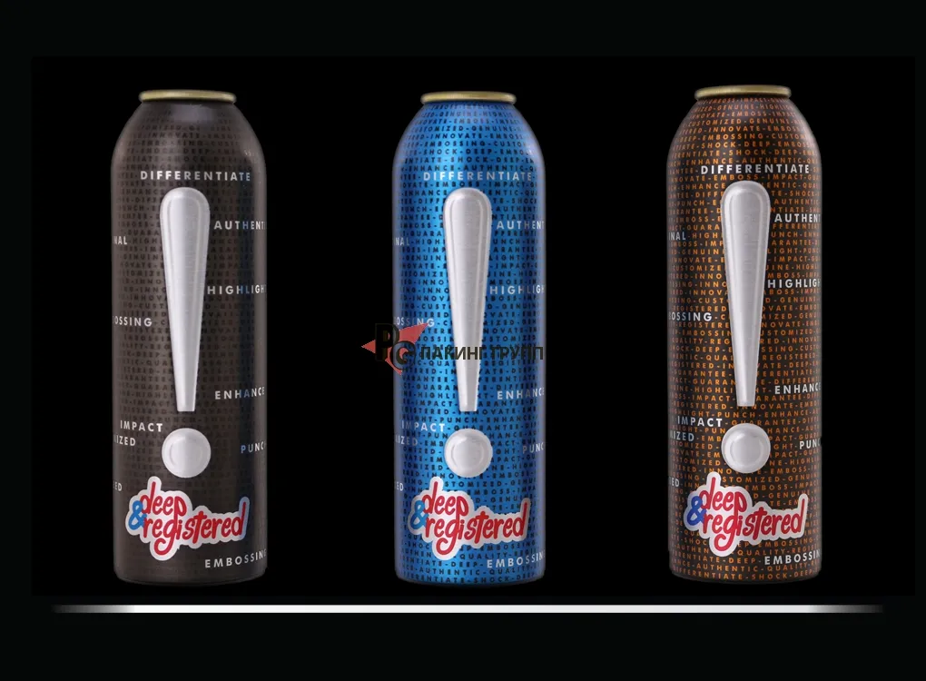 Алюминиевые баллоны c рельефной штамповкой (embossing) выделят Ваш продукт на полке среди других. Еmbossing - это запатентованная технологии глубокого тиснения, с помощью которой Вы безусловно повысите имидж и узнаваемость своего бренда.
