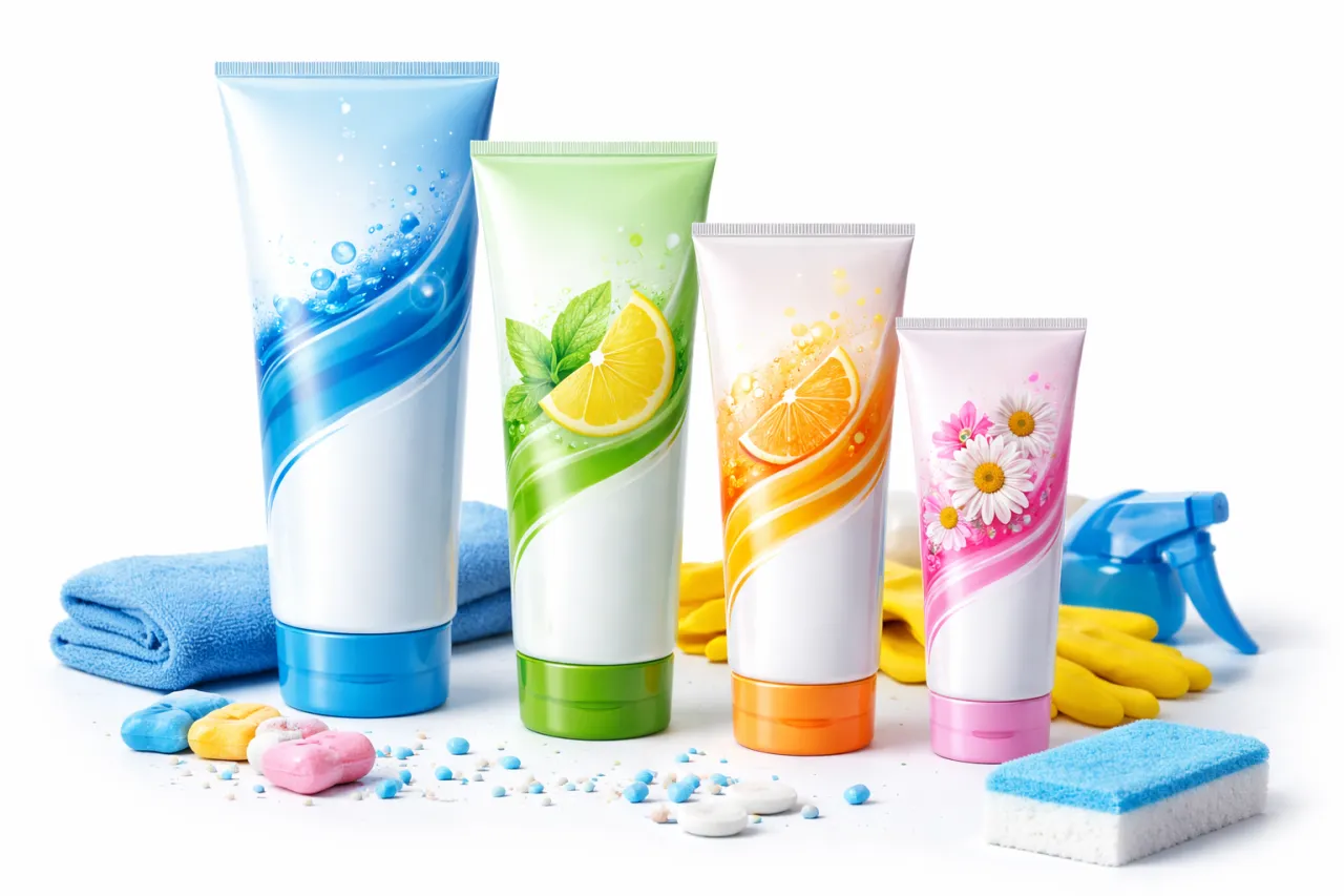 Ламинатные тубы для бытовой химии — практичное и надёжное решение для упаковки средств, предназначенных для очистки, ухода и технического обслуживания. Такой формат широко используется для паст, кремообразных и гелеобразных составов, где важны герметичность, стабильность формулы и удобство применения.